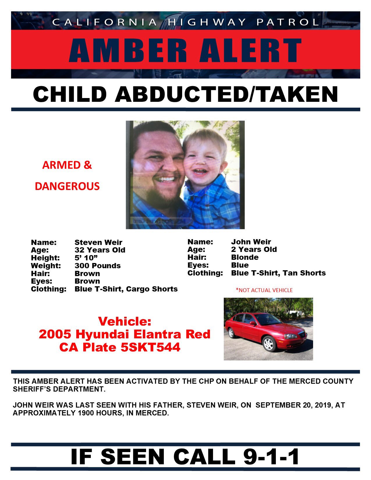 CHP issued a Blue Alert in an attempt to find the suspected shooter who. Blue Alert Activation Criteria In order for a Blue Alert to be activated the following criteria must be met Government Code section 85945. Two-year old John Weir was last seen with his father Steven Weir 32 in.