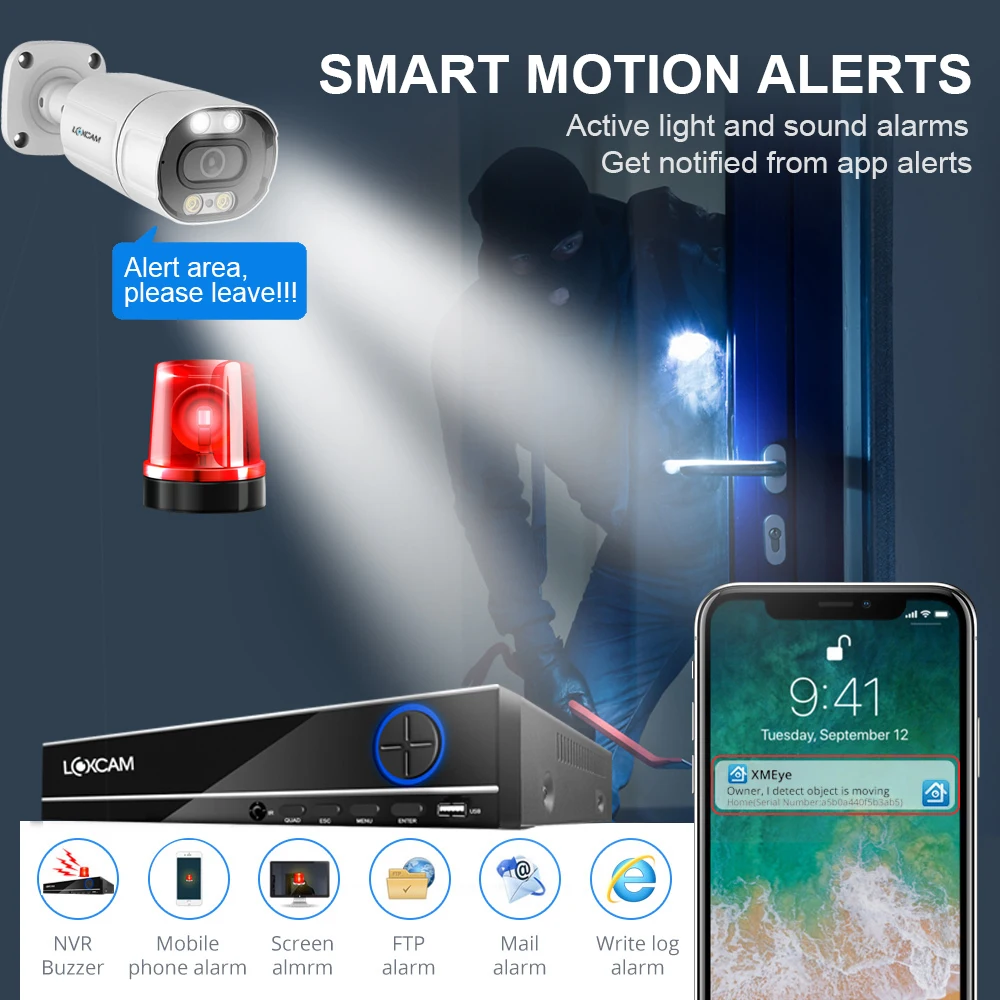 Loxcam H 265 8ch Cctv Security System 5mp Poe Nvr Two Way Audio Ai Outdoor Color Night Vision Ip Camera Video Surveillance Kit Surveillance System Aliexpress